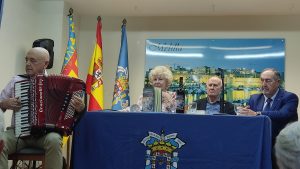 En la mesa estuvieron junto con la autora; Francisco Ponce, periodista y escritor, José Luis Cara Toledo, presidente de la Casa de Melilla en Valencia y José Segura Haro, presidente de, presidente de Granada Costa. Julio Aguado Codina, Director General de Participación y Acción Vecinal, le hizo entrega de un pin de la ciudad de Valencia como reconocimiento a la larga trayectoria cultural de Carmen.